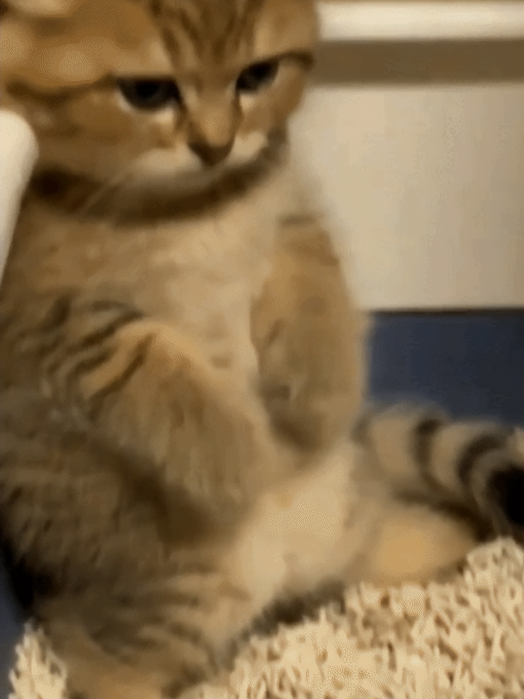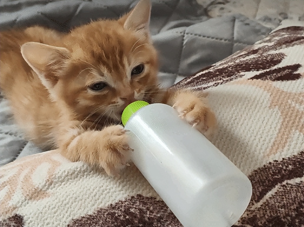 喝奶瓶长大的小猫,每天到点就要对着你喵喵叫,示意你它要喝奶,只要你把奶瓶递过去,小猫自己趴那就能自己抱着奶瓶喝,每喝一口,耳朵都在用力。