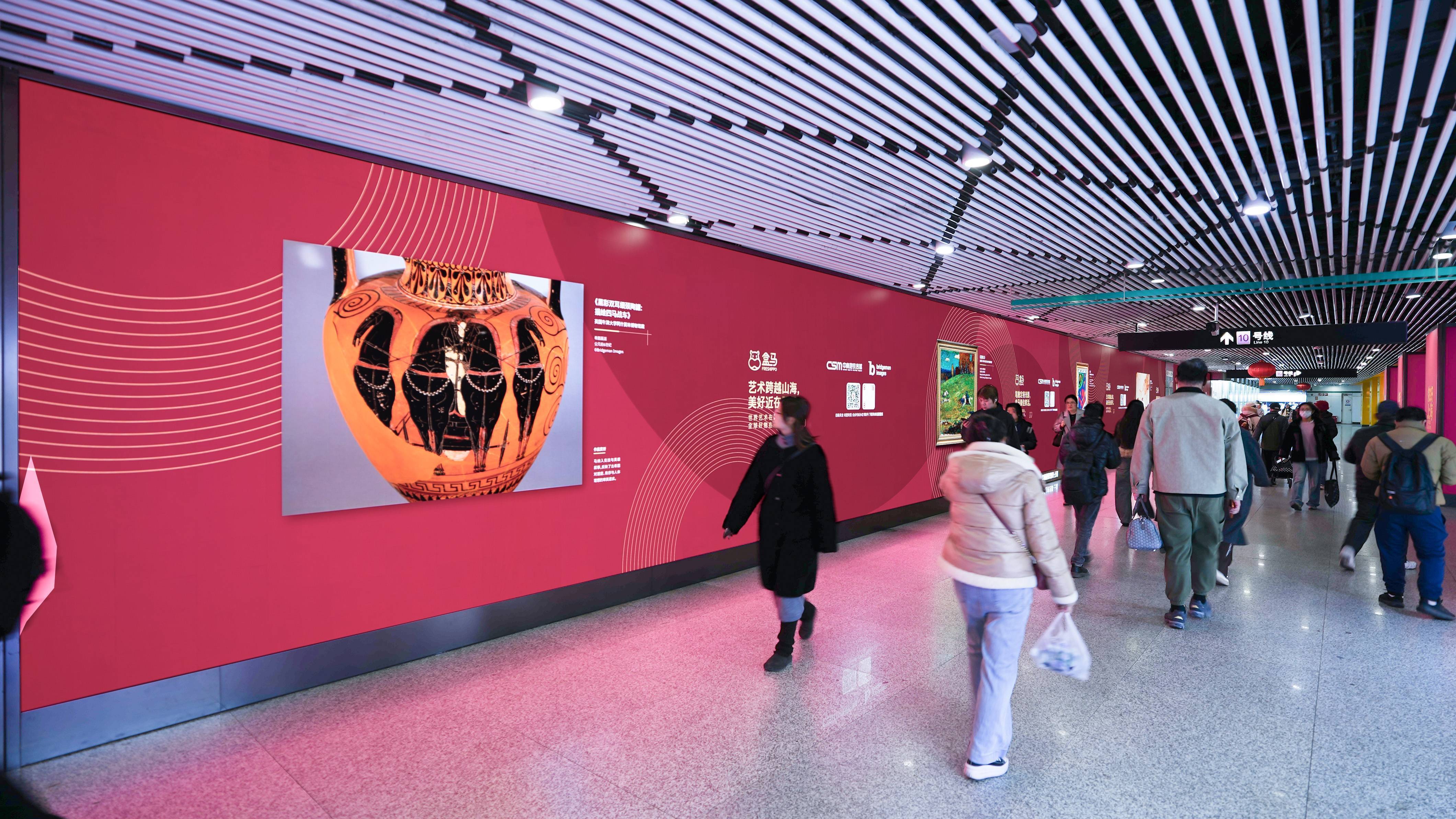 这是“骏马迎春”地铁公共艺术展,目前已于上海、武汉、长沙三座城市的地铁空间同步上线。作为“艺术地铁计‘画’”系列的首展,该项目旨在将经典艺术作品融入城市通勤场景,让公众在日常出行中感受文化氛围。